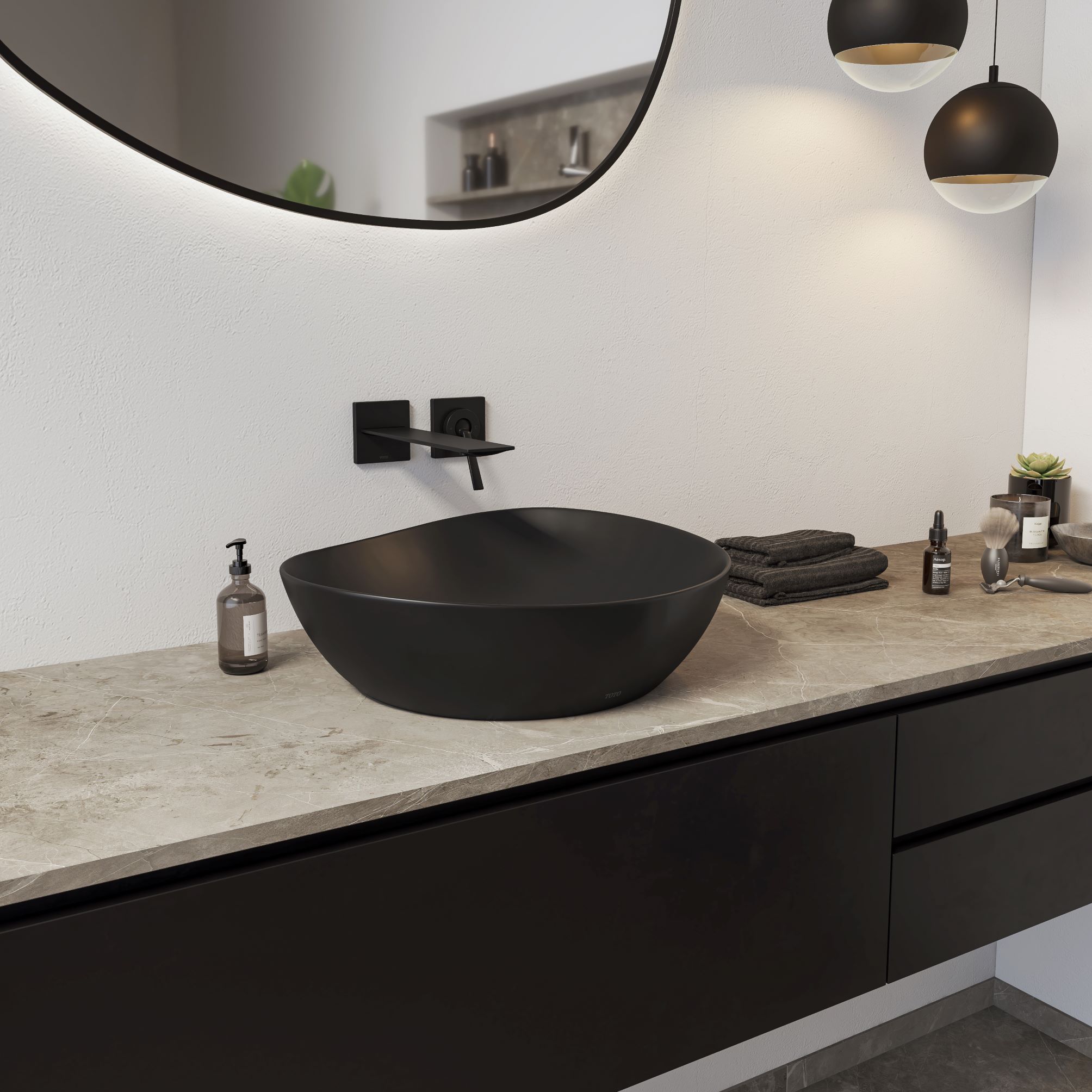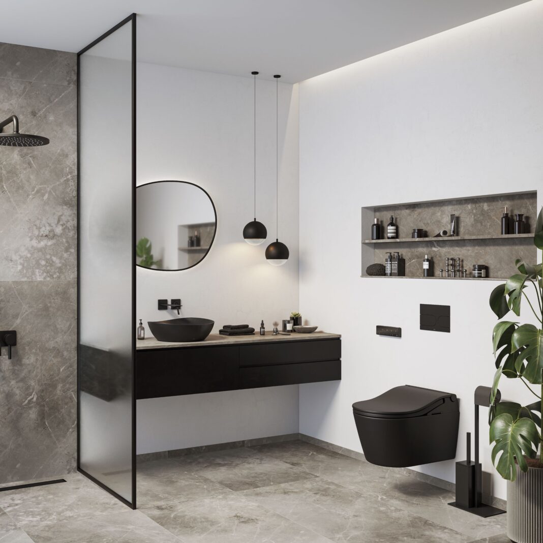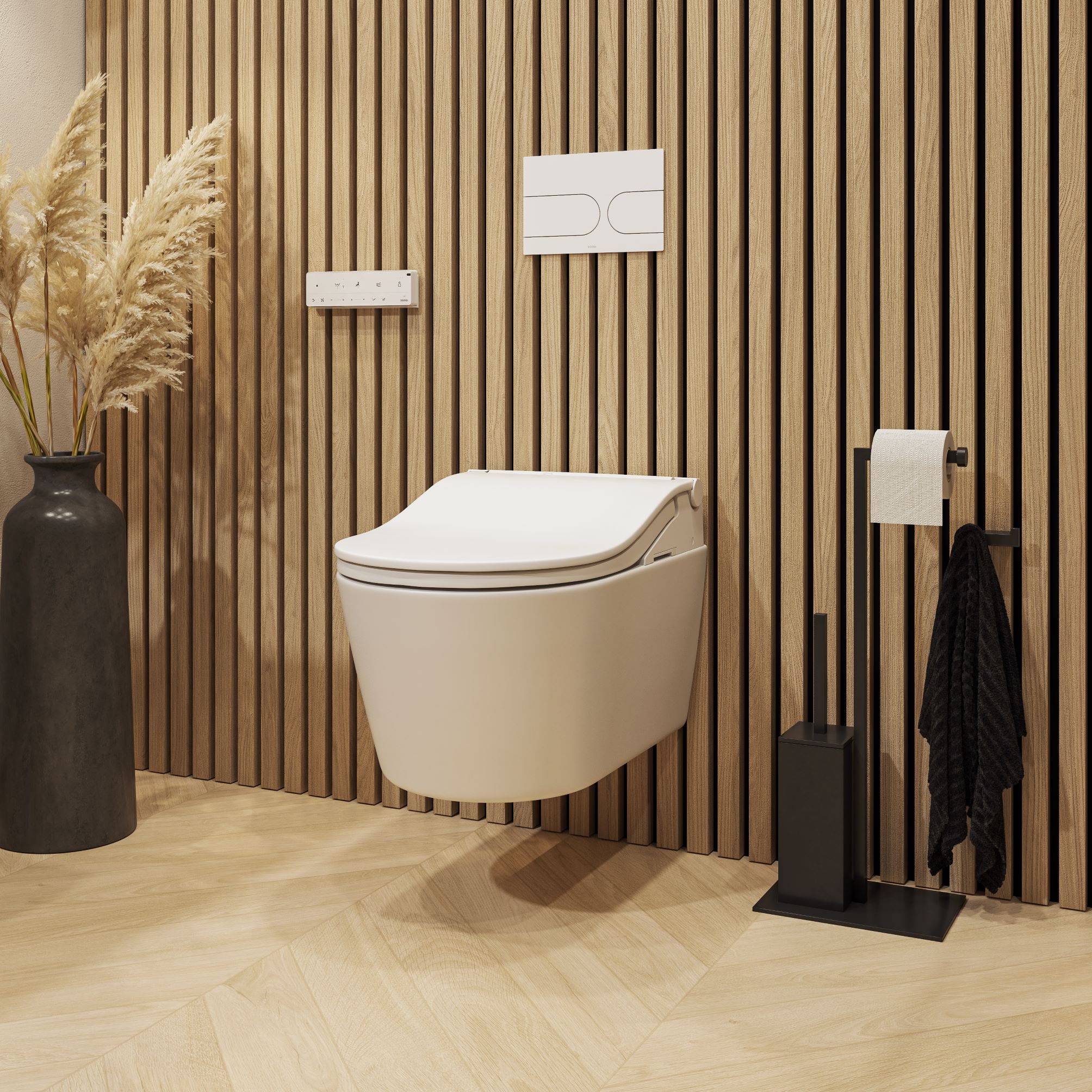 In matt Schwarz gewinnt Sanitärkeramik eine besondere räumliche Tiefe. Die Oberfläche wirkt samtig und reduziert Spiegelungen, wodurch Konturen und Geometrien stärker hervortreten. Gerade in puristisch geplanten Bädern oder kontrastreichen Badkonzepten entsteht so eine ruhige, aber markante Wirkung. Das WC RP und das WASHLET RW werden in dieser Variante zu bewusst gesetzten Gestaltungselementen, die den Raum strukturieren, ohne ihn zu dominieren.