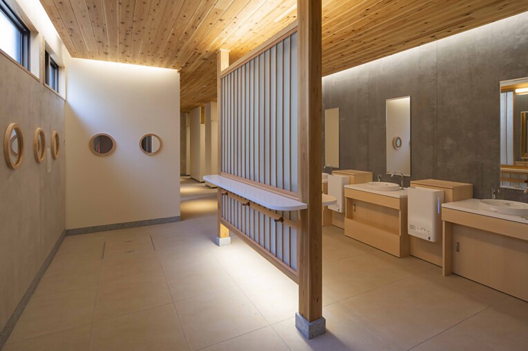 Auf der japanischen Insel Miyajima, nur wenige Schritte vom berühmten Itsukushima-Schrein entfernt, entstand die Miyajima Omotenashi Toilet. Der öffentlich zugängliche Sanitärraum vereint Komfort, Orientierung und Ästhetik. Großzügige Bewegungsflächen ermöglichen Menschen mit Rollstuhl und deren Begleitpersonen genügend Platz, während klar strukturierte, leicht verständliche Bedienelemente für alle intuitiv nutzbar sind. Die Gestaltung setzt auf warme Materialien, angenehme Lichtführung und eine einladende Atmosphäre, sodass der Raum mehr ist als eine funktionale öffentliche Toilette. Er wird zu einem Ort, an dem sich Besucherinnen und Besucher willkommen fühlen und die Philosophie des UD von TOTO ganz real erleben können.