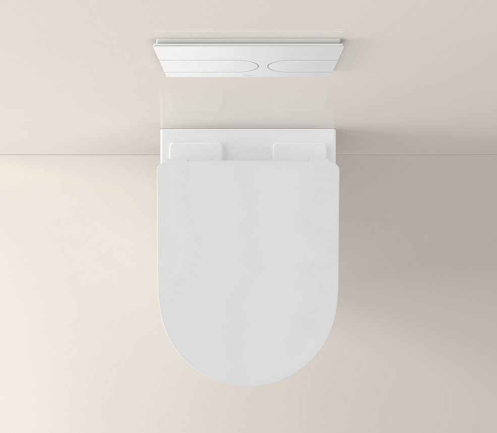 Die FlexCover decken die Installationsöffnungen in der WC-Keramik von TOTO ab. Erfolgt das Upgrade zu einem WASHLET, werden die Öffnungen für Wasser- und Stromanschlüsse benötigt.